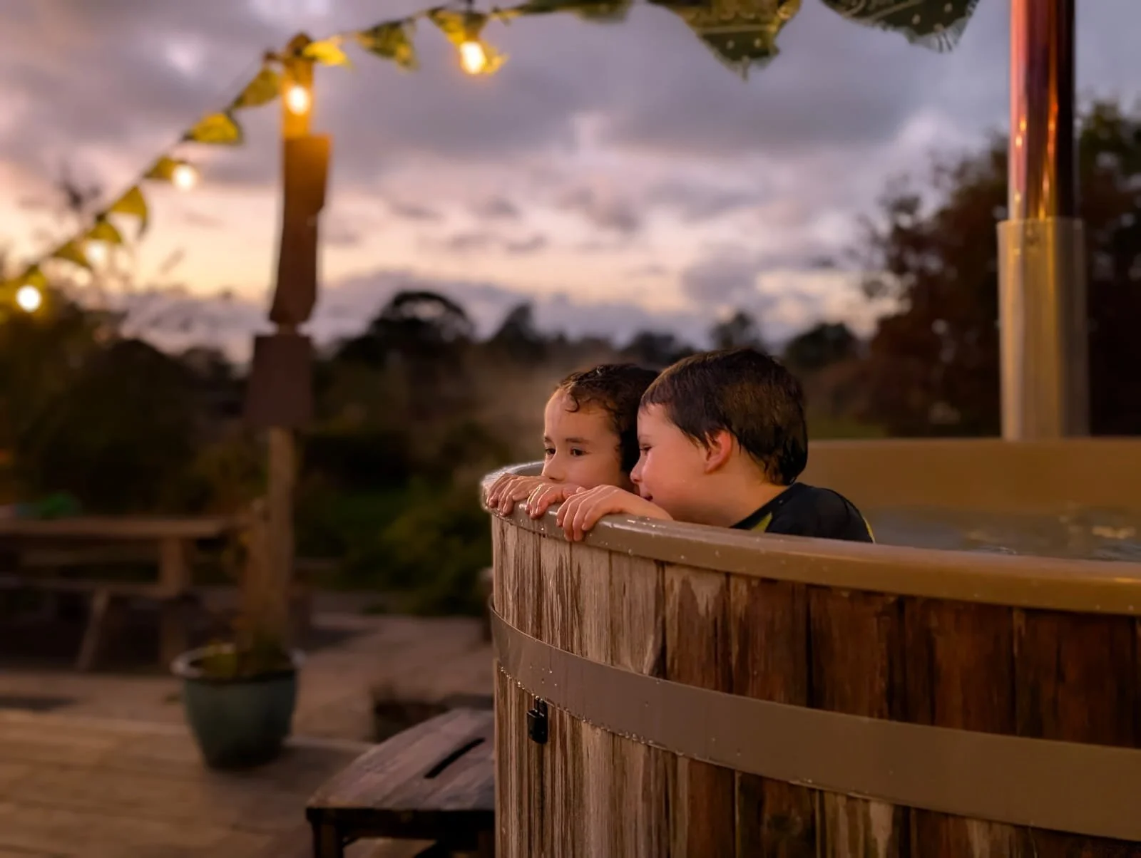 Tucked away just outside Raglan, our peaceful site is set up like a little village, with a mix of comfortable spaces to sleep, cook, and socialise. The main barn offers a touch of rustic luxury, the cosy bunkhouse brings everyone together in a fun, informal setting, and the glamping yurts let you sleep under the stars in comfort. There’s plenty of space to spread out - or gather in - with outdoor seating, a hot tub, fire pit, and even a bar for those golden evenings that turn into late-night stories.
