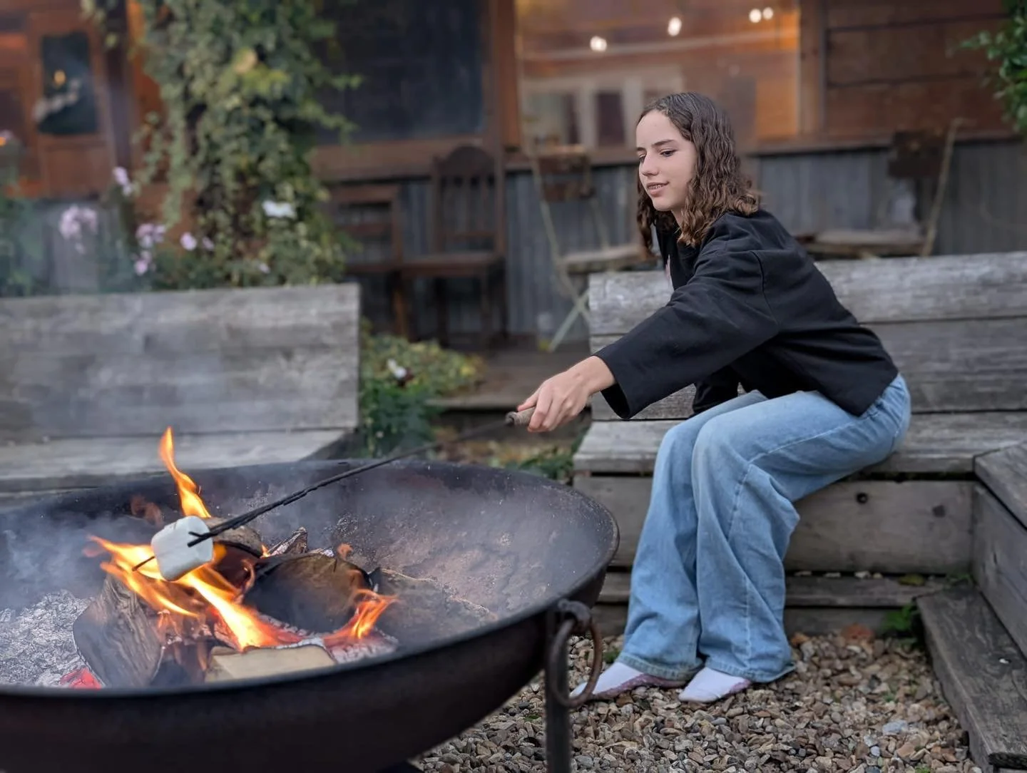 If you’re wondering what we’re like as hosts, the honest answer is that we’re happiest around food. There’s a proper kitchen, a BBQ, a pizza oven, and the fire pit, all set up for big cooks and long evenings. Most groups end up cooking something memorable while they’re here — either a big family dinner or a simple feast that tastes way better outdoors.